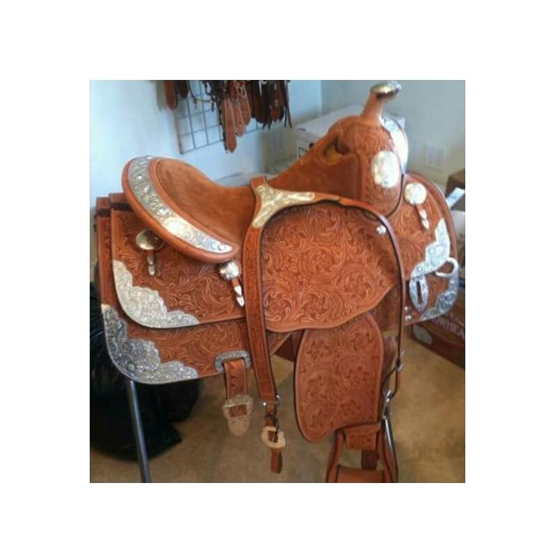 อานม้าแบบตะวันตก LLT ทำมือ 100% ลายฉลุ หนังวัวแท้สีน้ำตาล ขนาด 10-18 นิ้ว โครงไฟเบอร์