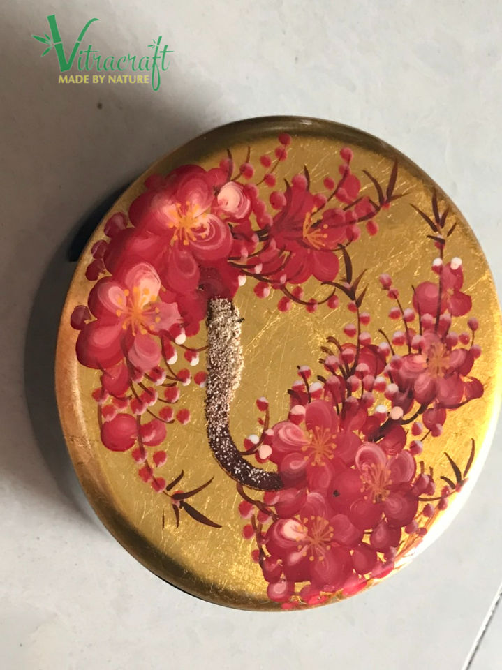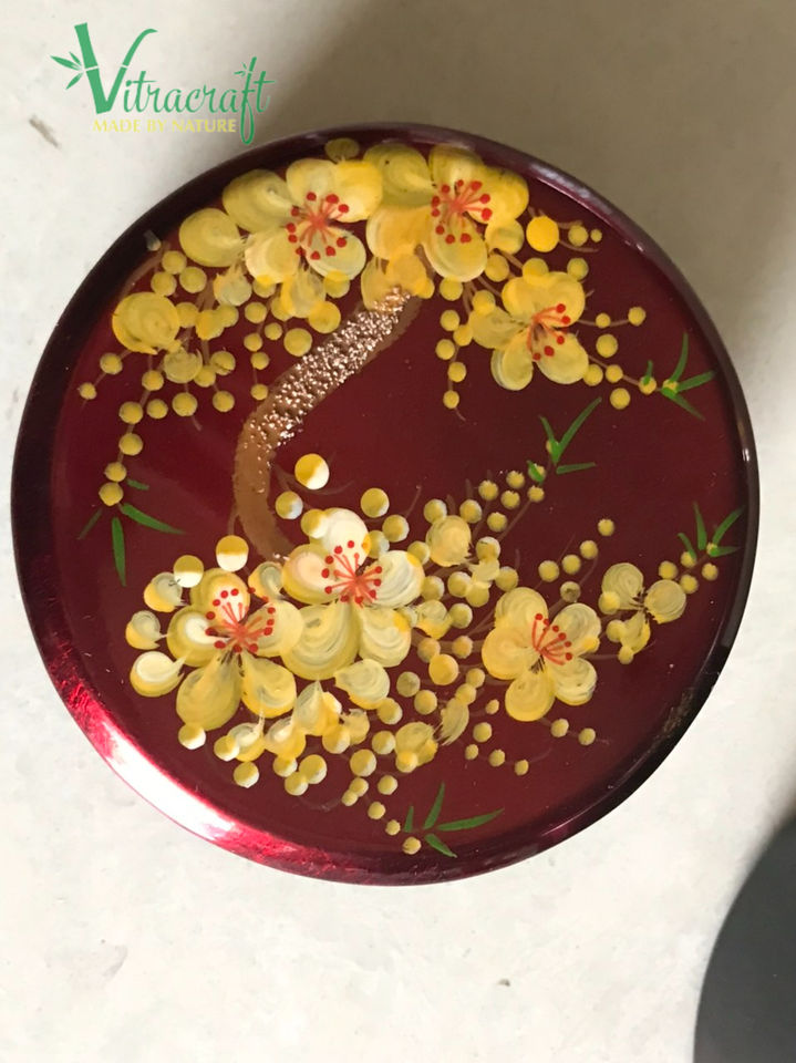100% ทำด้วยมือ, จานรองแก้วแล็คเกอร์, จานรองแก้วกลม, ลวดลายมือวาดที่ไม่ซ้ำกันชุดรวม5 coasters แฮนด์เมดเวียดนามปลอดภัยที่จะใช้