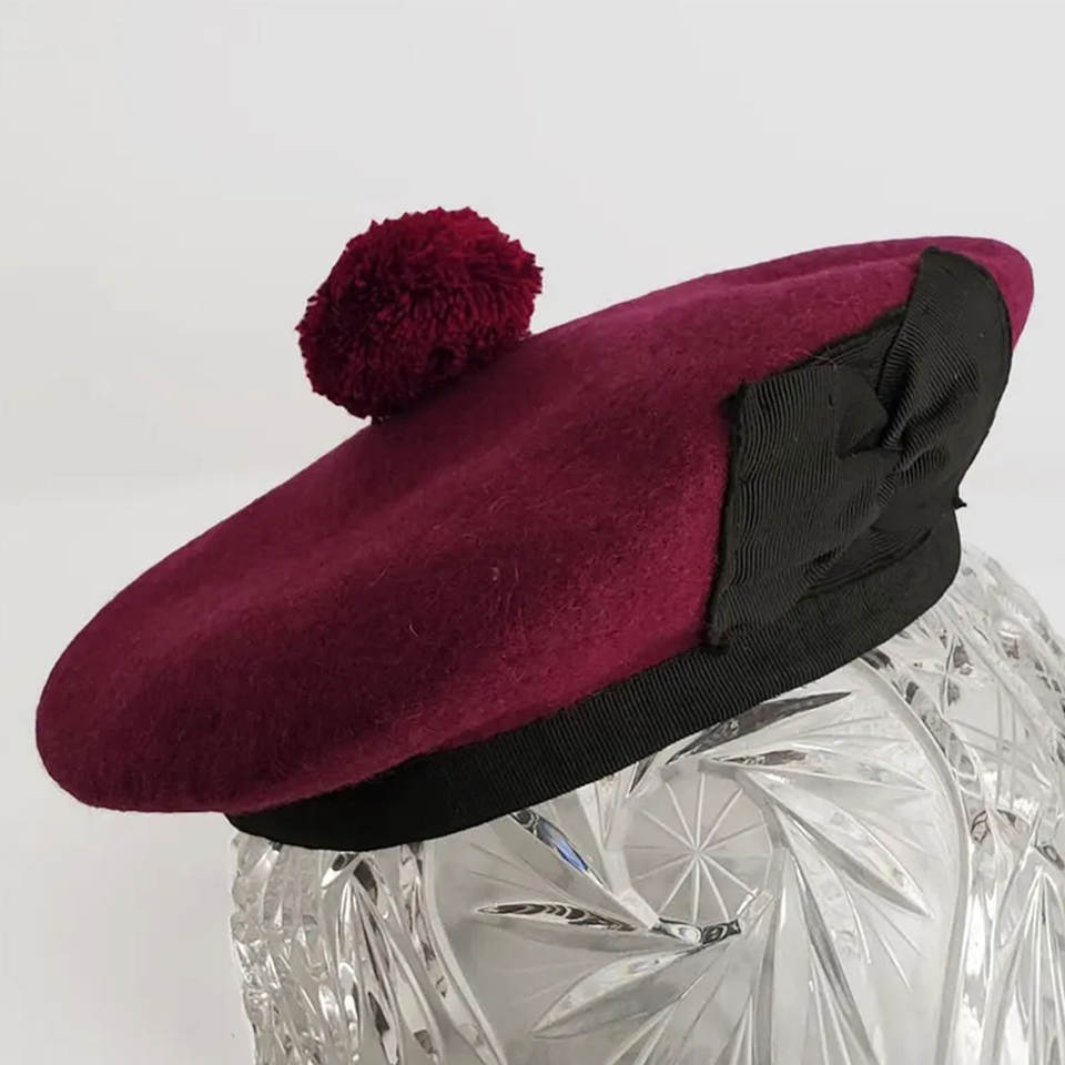 หมวกบัลมอราลทำมือ 100% จากขนสัตว์ หมวกชาวสก็อตแบบดั้งเดิมพร้อมพู่ห้อยปอมปอม รุ่นปี 2026