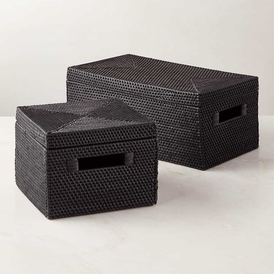 กล่องหวายทรงลูกบาศก์สีดำงาน100% กล่องจากวัสดุธรรมชาติใส่ผักผลไม้เบเกอรี่ของขวัญตกแต่งบ้านแนววินเทจแบบเรียบง่าย