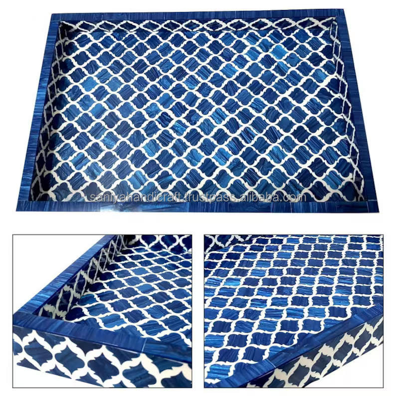 100% จานอาหารงานแต่งงานตกแต่งบ้านสมัยใหม่ถาดเสิร์ฟไม้ฝังกระดูกสไตล์อเมริกันดีไซน์ตามสั่ง