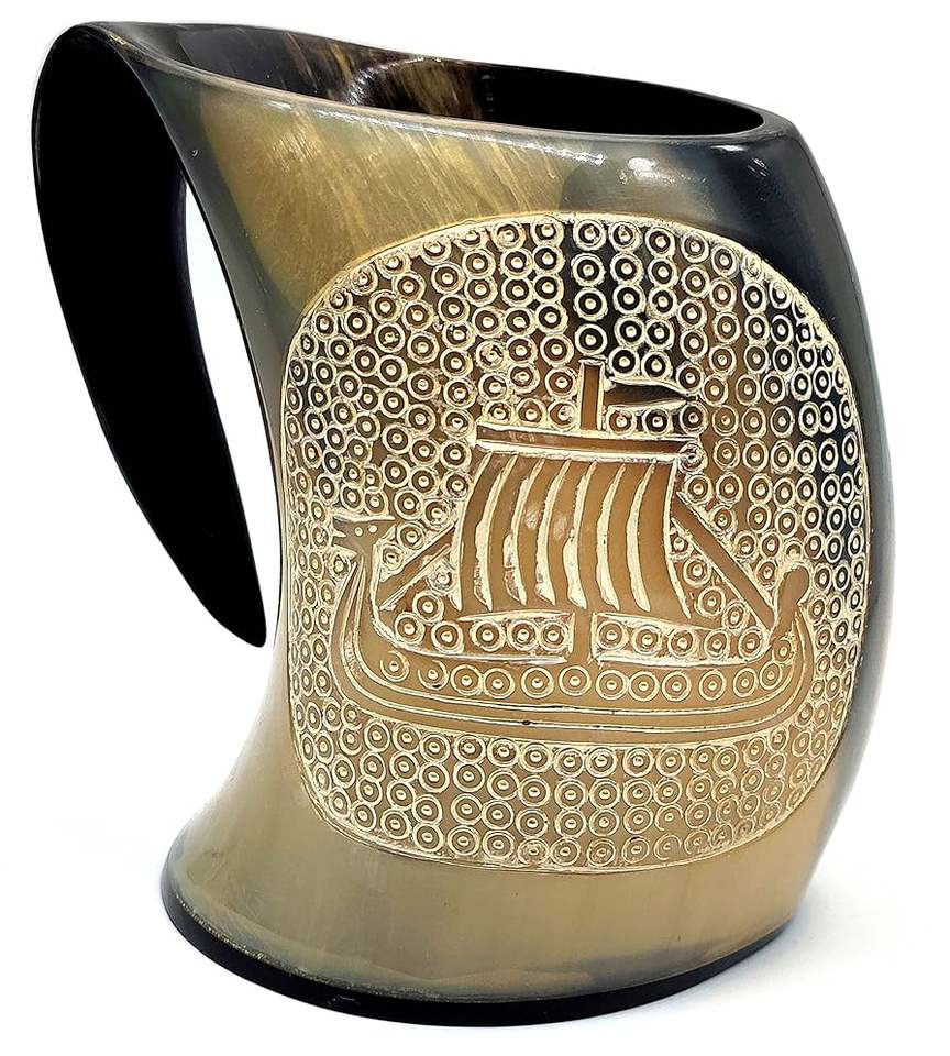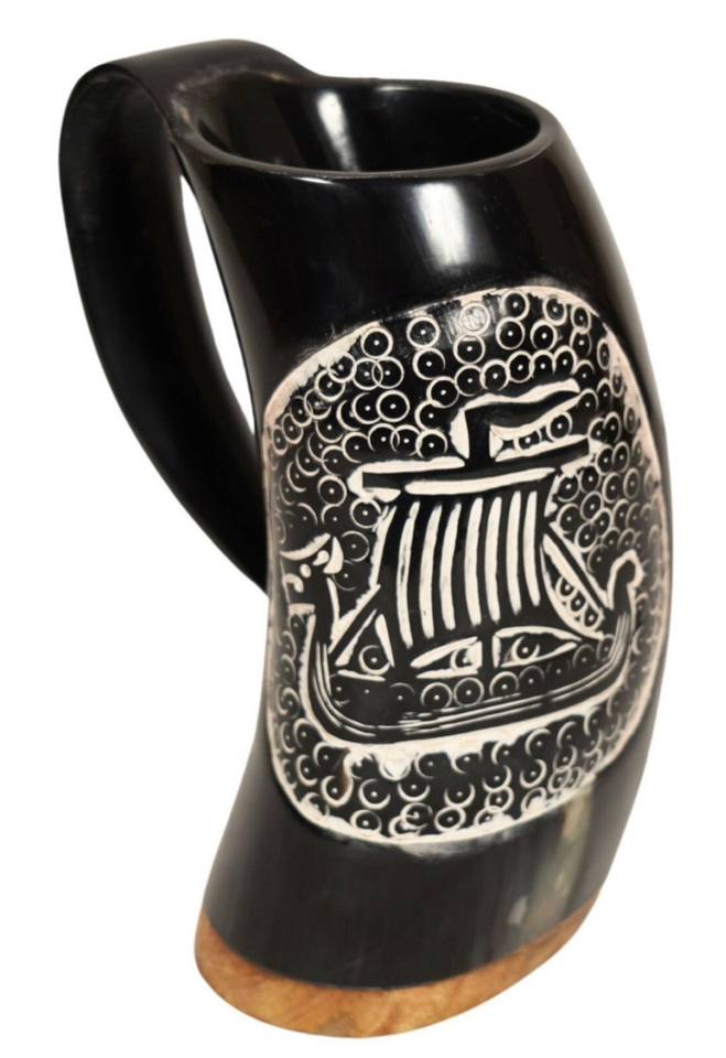 แก้วเบียร์เขาควายแกะสลักคุณภาพสูง 100% ความจุขนาดใหญ่ ดีไซน์สไตล์ไวกิ้ง สำหรับงานปาร์ตี้ บรรจุภัณฑ์แบบกำหนดเอง ของขวัญ ราคาประหยัด