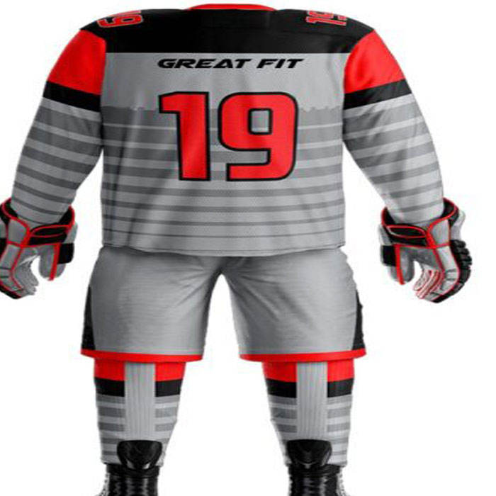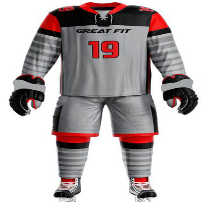 ชุดเสื้อเจอร์ซีย์เล่นฮ็อกกี้น้ำแข็งสำหรับผู้ชายเสื้อกีฬาผลิตจากโพลีเอสเตอร์แบบระเหิด100% สำหรับผู้ชาย100%