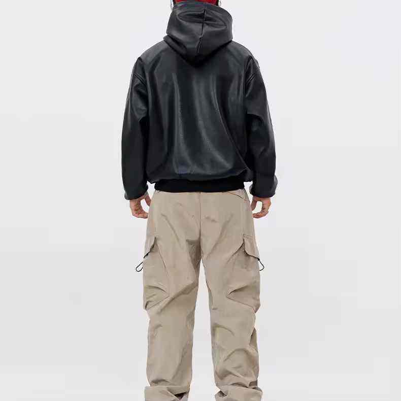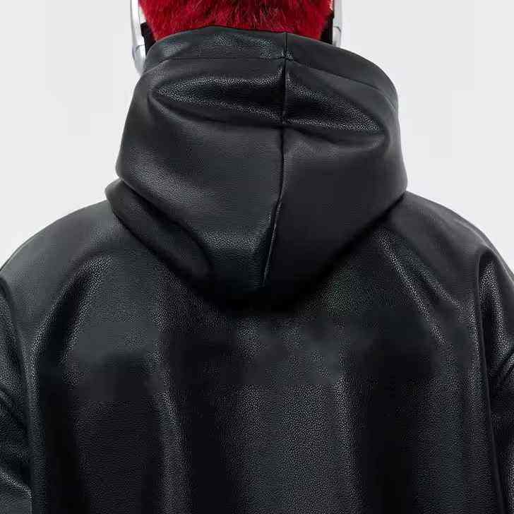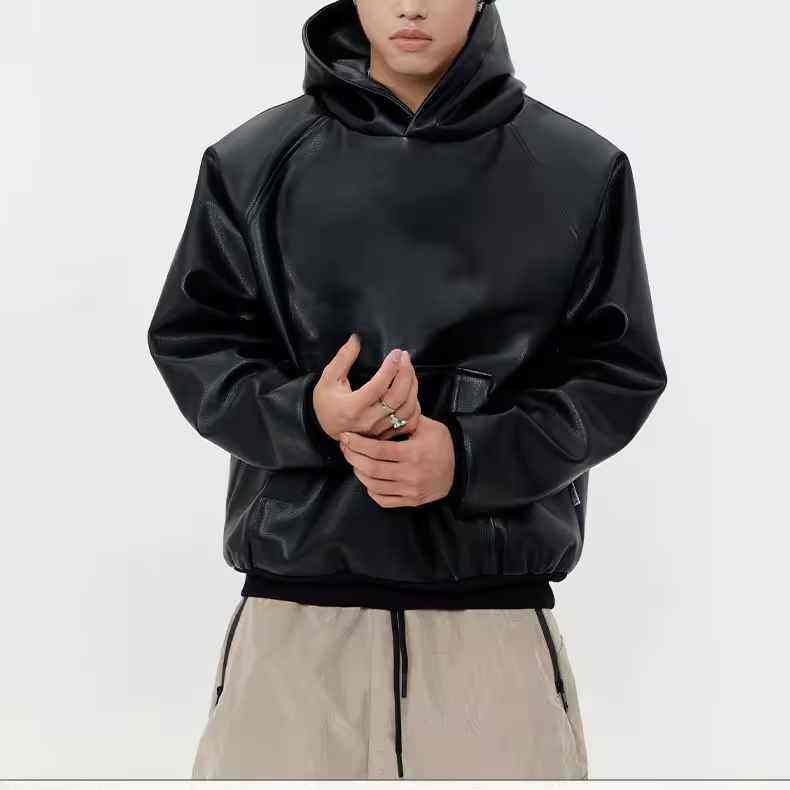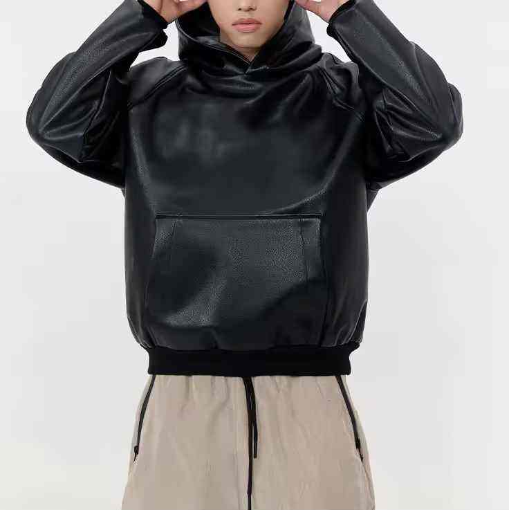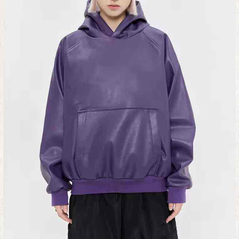 เสื้อฮู้ดดี้คอตั้งหนังแท้คุณภาพสูง 100% สำหรับฤดูหนาว แบบยูนิเซ็กซ์ สีพื้น พิมพ์ลายดิจิทัล ทรงโอเวอร์ไซส์