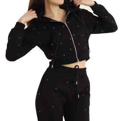 ชุดวอร์มสตรีทแวร์ฤดูหนาวแบบยูนิเซ็กซ์คุณภาพสูง 100% ผลิตตามแบบ OEM ลวดลายย้อมสีแบบ Acid Wash ประดับคริสตัล พร้อมกางเกงขายาวทรงบาน ผ้าฝ้าย ผลิตในปากีสถาน