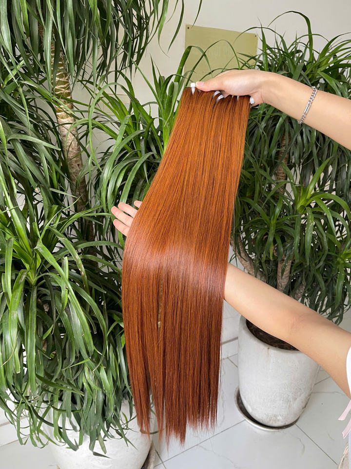 ผมต่อแบบดิบทำจากกระดูกตรงผมดิบคุณภาพสูงแบบ100% ผมทอคู่สีเวียดนามพร้อมส่งสีส้ม