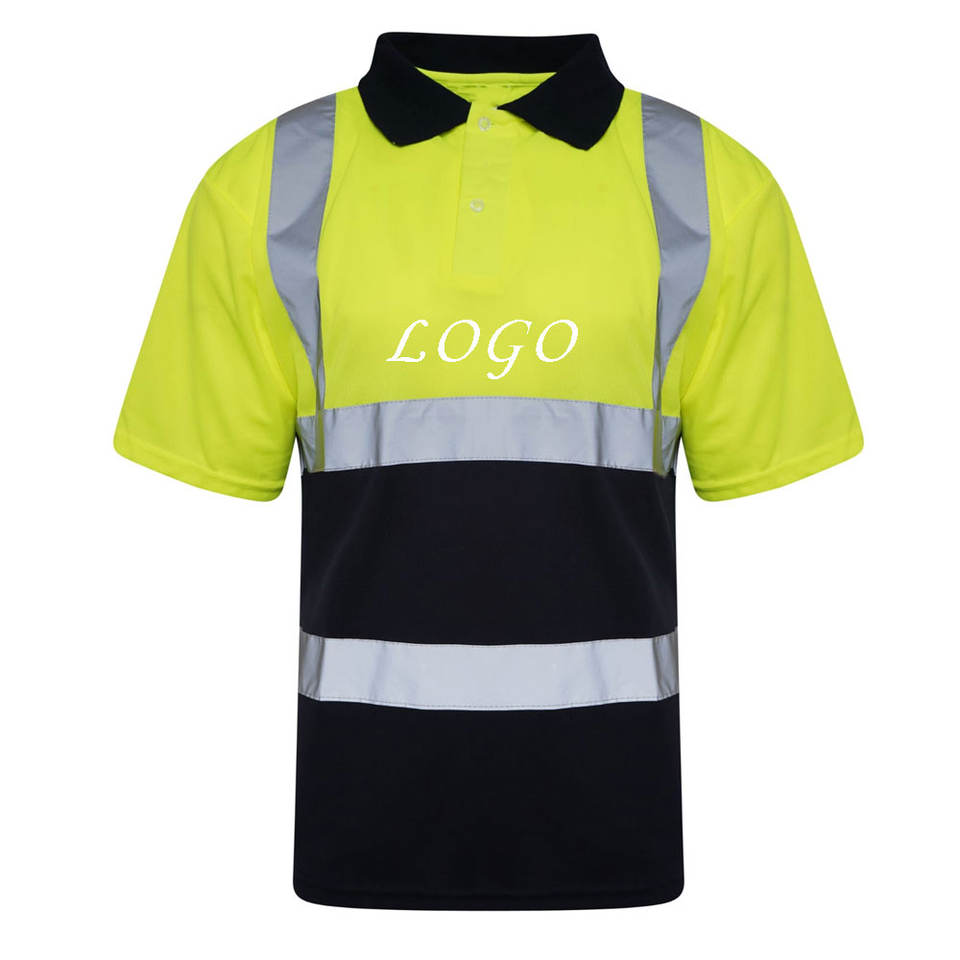 เสื้อโปโล100% ความปลอดภัยสะท้อนแสงมองเห็นได้ชัดเจนมีกระเป๋าคอตั้งเสื้อทำงานก่อสร้าง