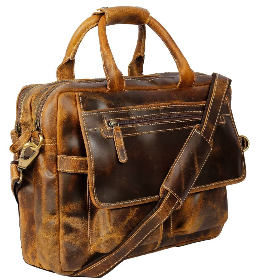 100% กระเป๋านักบินหนังควายวัสดุคุณภาพสูงกระเป๋าแมสเซนเจอร์กระเป๋าเดินทางใส่แล็ปท็อปสำนักงานรับประกันตลอดอายุการใช้งาน