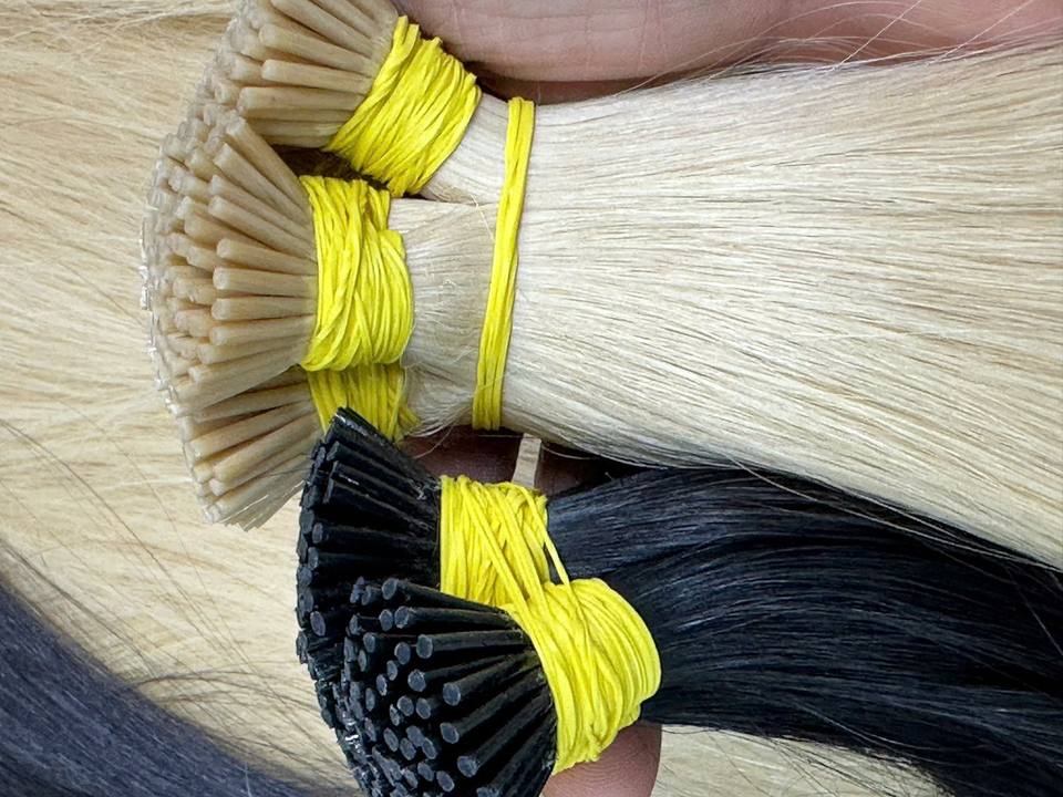 ผม100% มนุษย์ผมต่อปลายแหลมผมมนุษย์เคราตินเรียงตามแนวผมมนุษย์ผมต่อแบบมีผมตรงระดับหนังกำพร้าผมปรับสีได้ตามต้องการ
