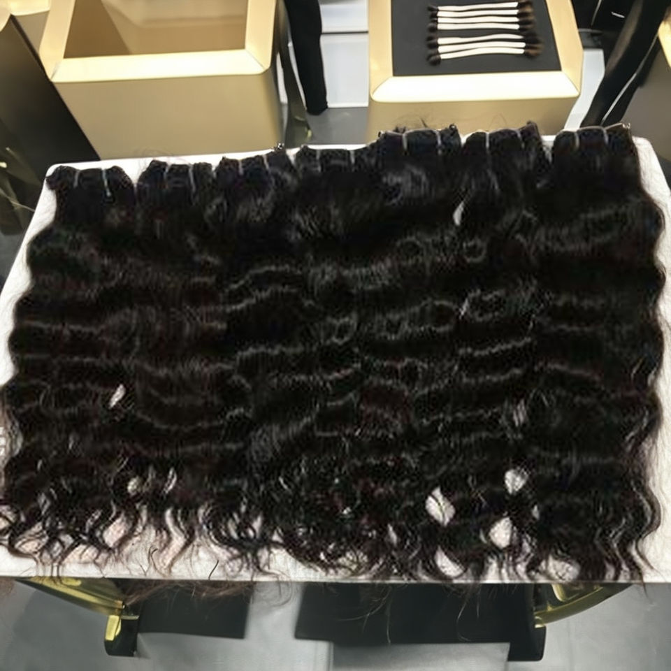 100% ผมมนุษย์เครื่องทอสองชั้นแบบลอนลึกทรงหลวมสำหรับต่อผมจากอินเดีย