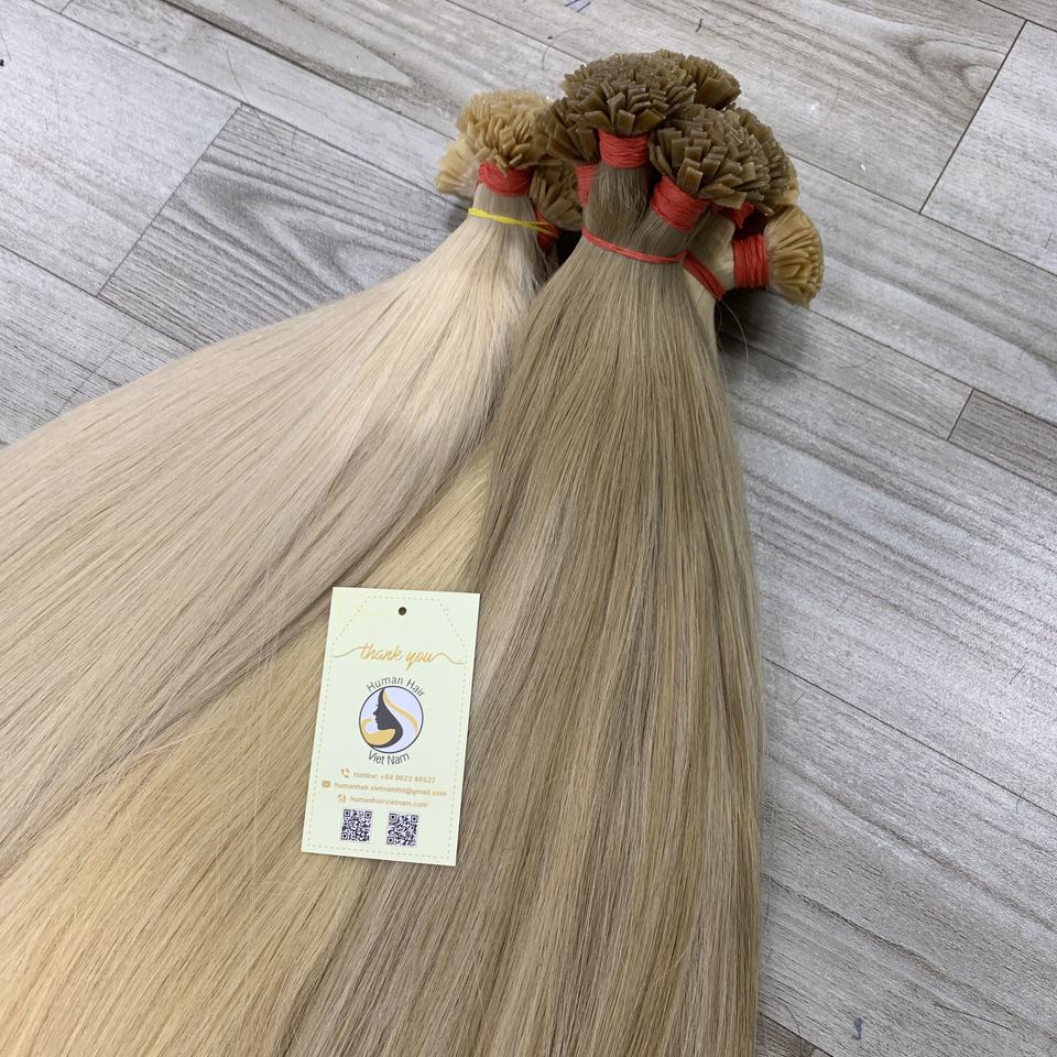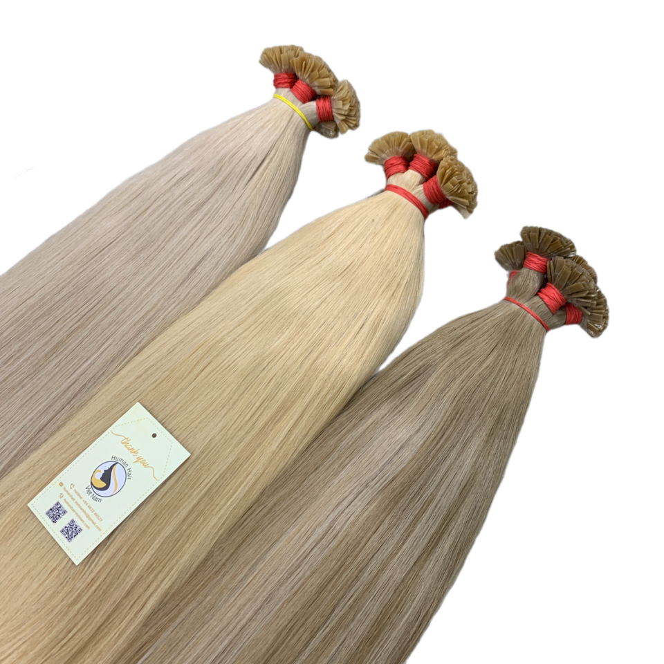 ผมมนุษย์100% ต่อผมมนุษย์ผมคนแพลตตินัมเวียดนามปลายเคราตินก่อนถูกผูกมัด