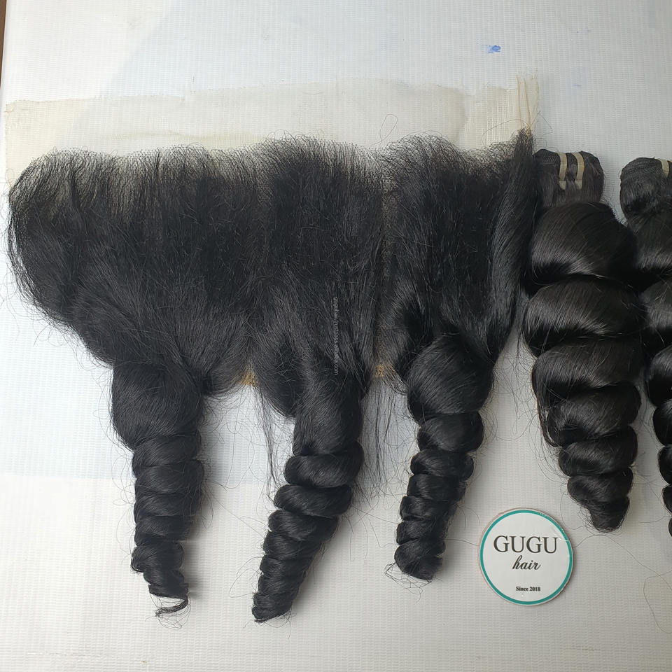 100% ต่อผมเรมี่แท้ของมนุษย์ยืดได้20-30นิ้วมัดลูกไม้ HD แบบคู่คู่จากเวียดนาม1B สีดำธรรมชาติ
