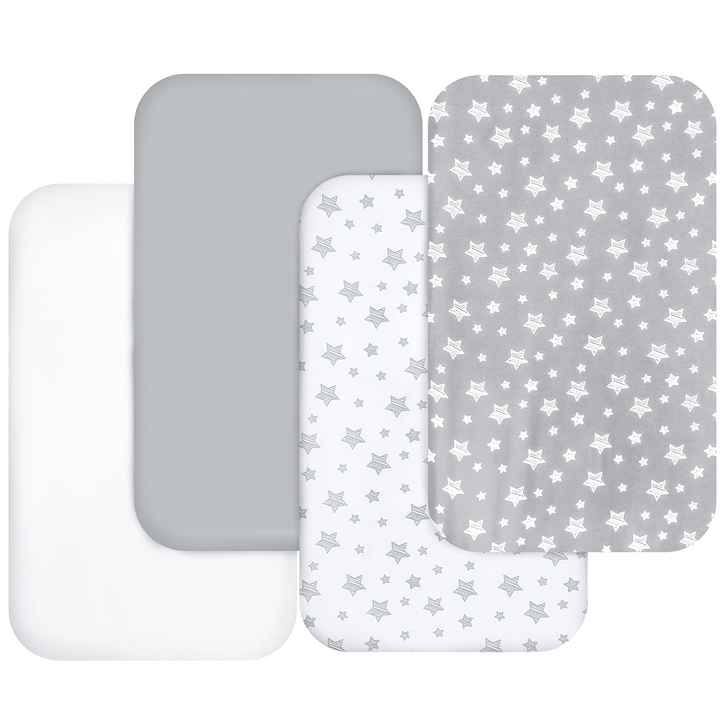 ผ้าปูที่นอนเด็กอ่อนแบบพอดีตัว ผลิตจากผ้าเจอร์ซีย์คอตตอน 100% ลายพิมพ์