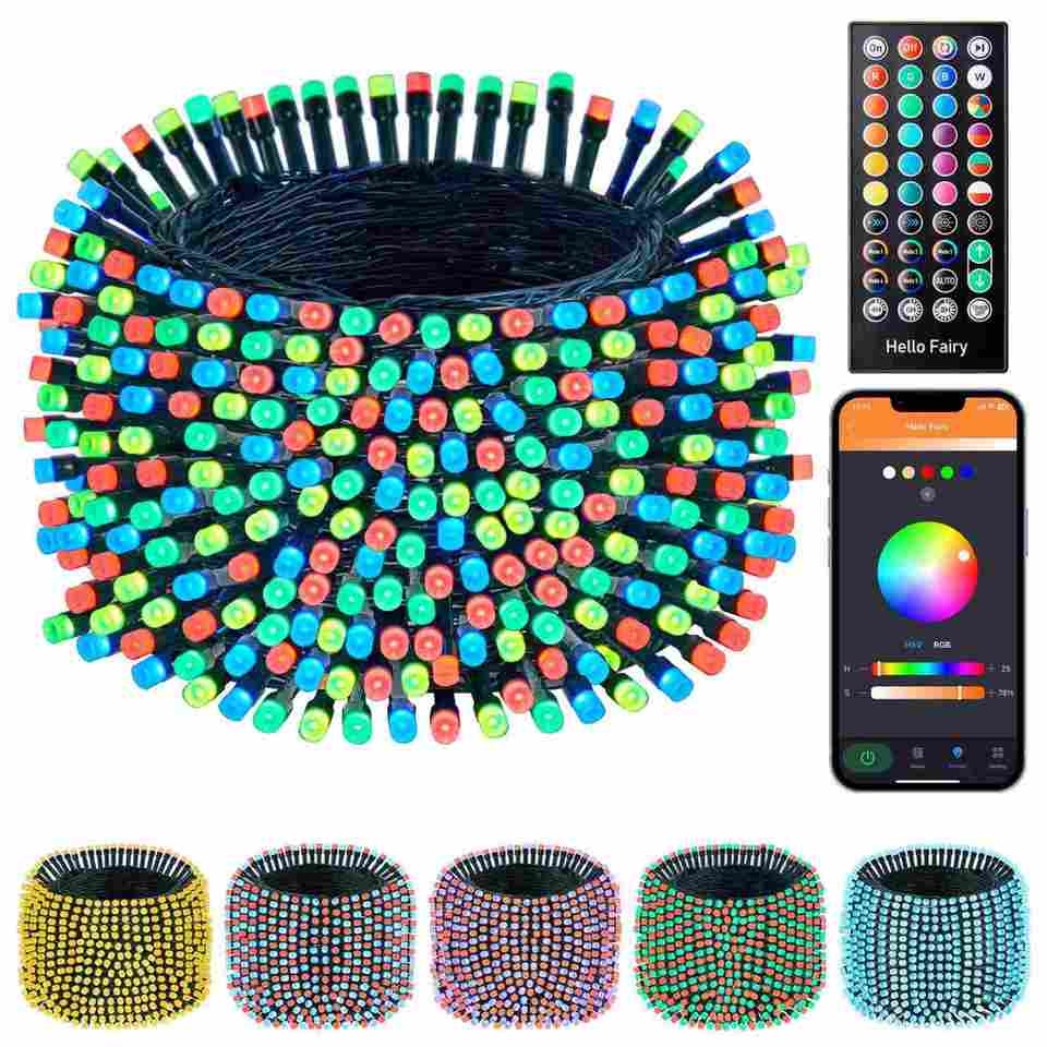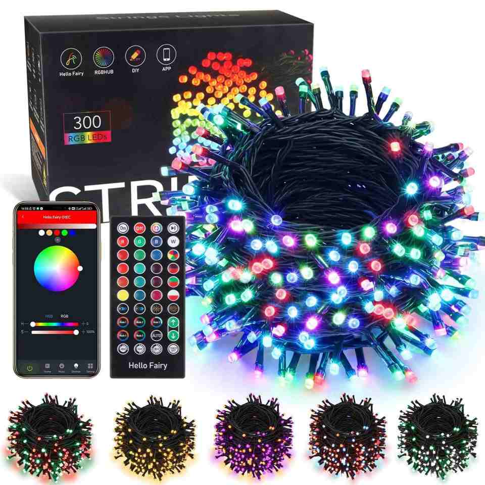 ไฟประดับตกแต่งคริสต์มาสในร่ม 100 ดวง LED RGB ระดับ IP55 ไฟกระพริบเปลี่ยนสีได้ พร้อมปลั๊กเสียบผนัง คู่มือการใช้งาน