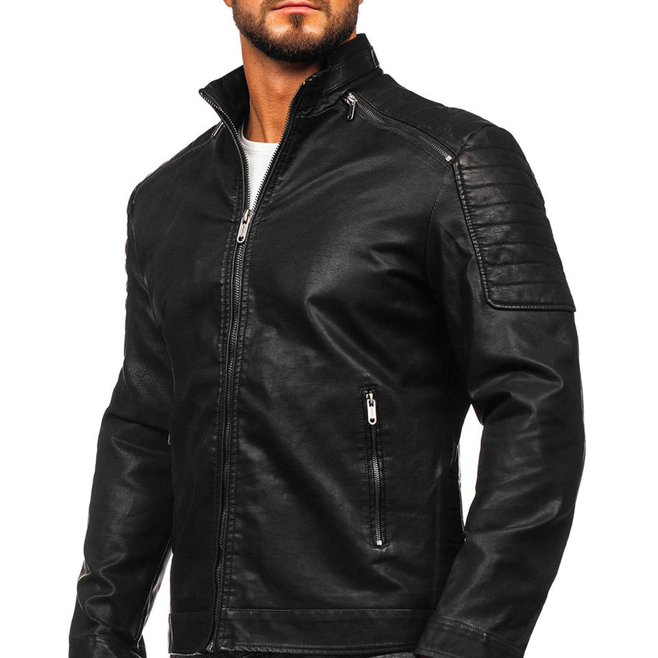 เสื้อแจ็กเก็ตหนังสำหรับผู้ชายเสื้อแจ็คเก็ตหนังสไตล์สตรีทแขน100%