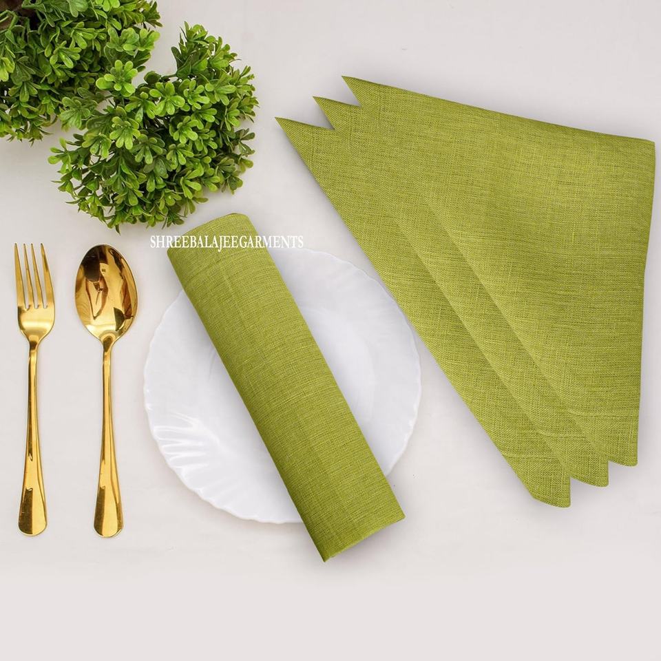 ผ้าเช็ดปากผ้าลินิน100% ดีไซน์ต้นไม้ดอกไม้สีเขียวทำมือเป็นมิตรต่อสิ่งแวดล้อมทันสมัยใช้ซ้ำได้อุปกรณ์เสริมผ้าเช็ดปาก