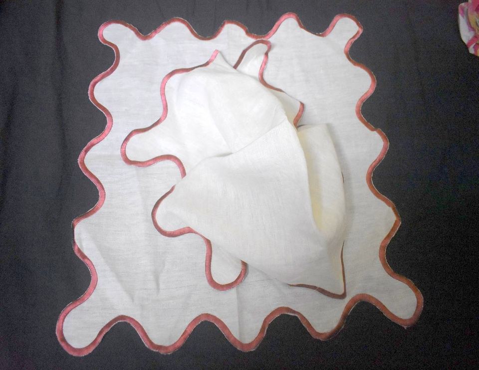 ผ้าลินิน100% ที่ทันสมัยหอยเชลล์ปักผ้าเช็ดปากเทคนิคที่ทำด้วยมือ