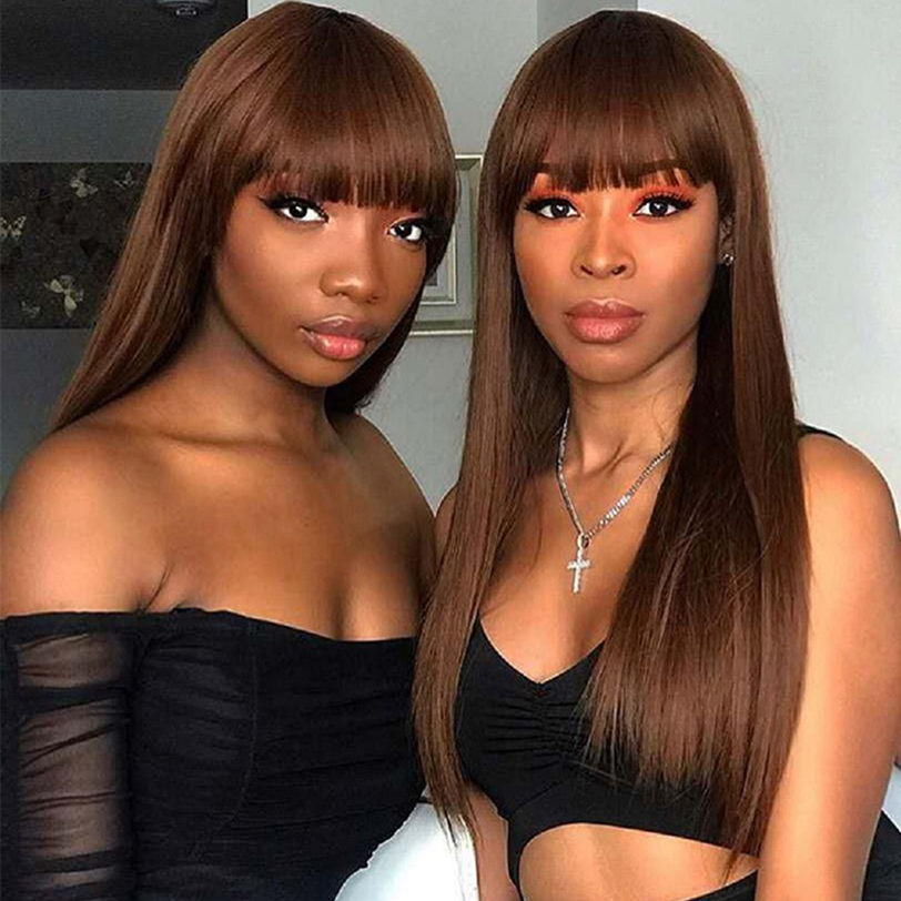 Hair Texture:Brown Straight Wholesale Wigs Women Wig With Bangs
