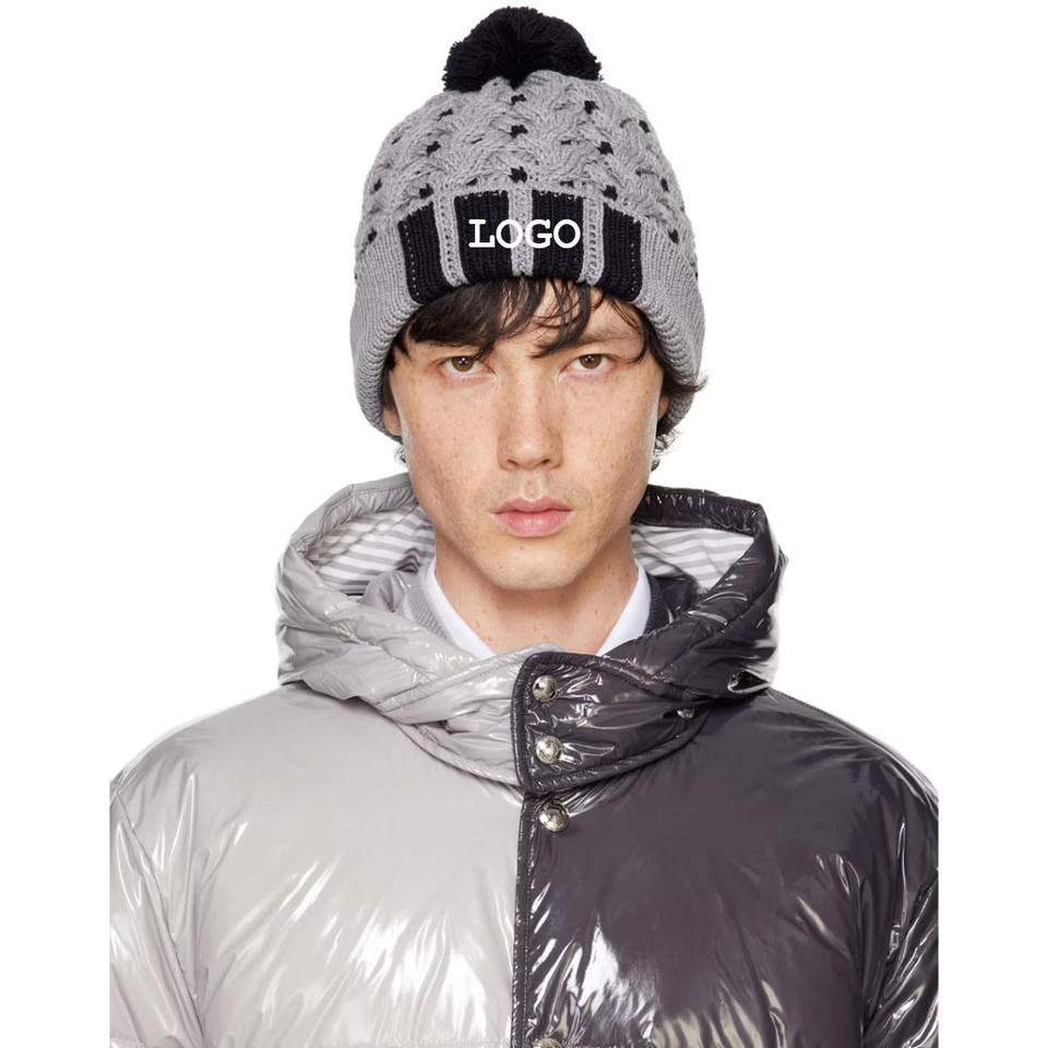หมวกไหมพรมขนแกะเมอริโน100% สำหรับผู้หญิงและผู้ชายหมวกถักอบอุ่นลายปัก3D สำหรับฉากชายหาด