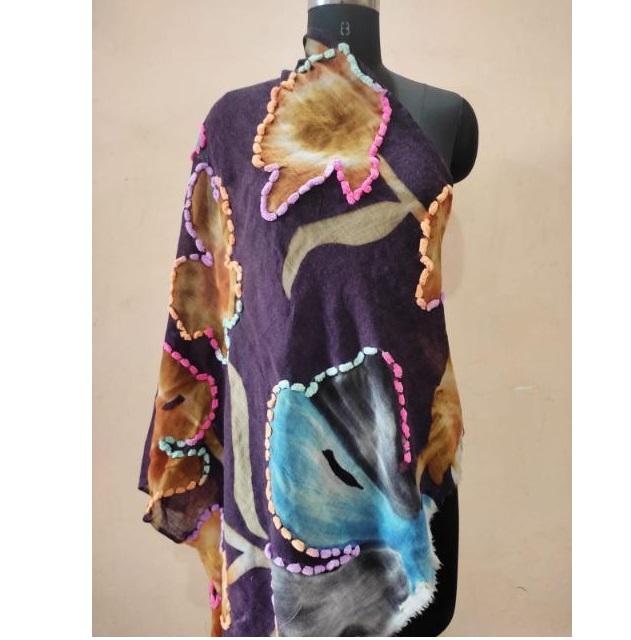 ผ้าพันคอขนสัตว์ 100% พิมพ์ลายด้วยมือ พร้อมงานปักวัสดุ
