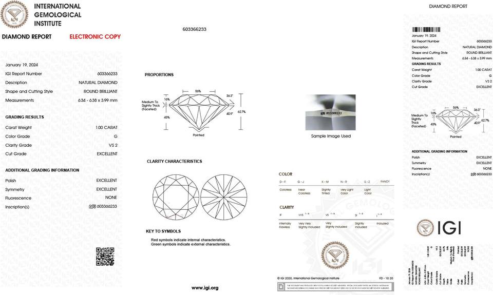 100% Natural 1.00 Carat White G Color Grade VS2 Clarity Brilliant Cut Loose Solitaire Diamond IGI Certified OEM Available