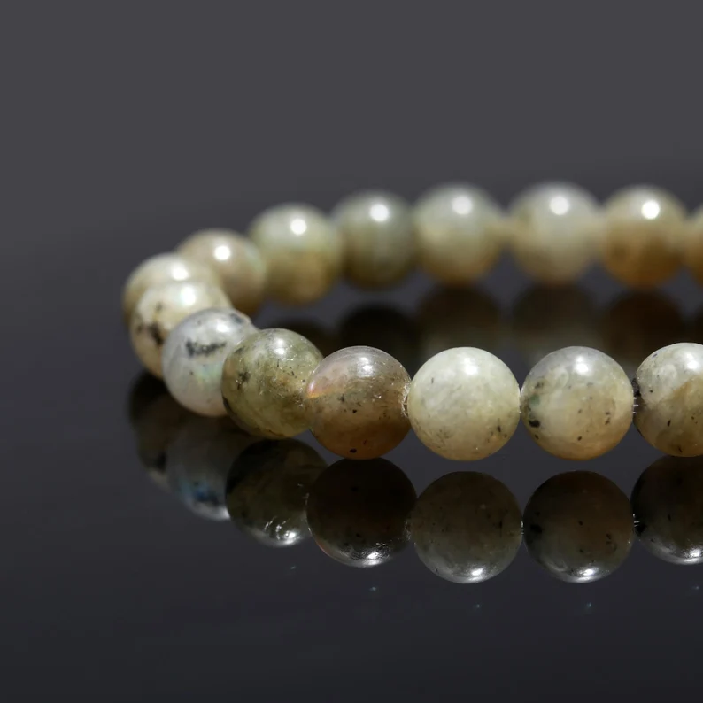 กำไลข้อมือคริสตัลลาบราดอไรต์ทรงกลมเรียบ8มม. สำหรับ100% กำไลยืดอัญมณีรักษาโยคะ