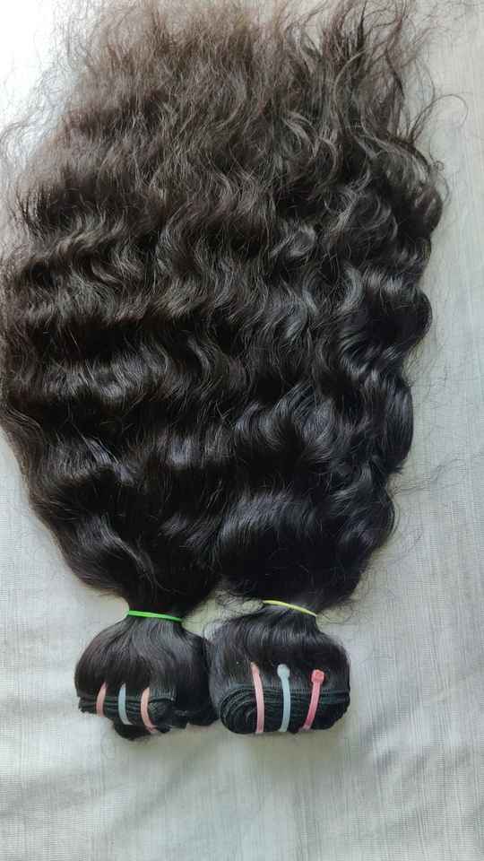 ผมแท้ 100% คุณภาพดีจากอินเดีย แบบเรมี่ จัดเรียงเส้นผมตามธรรมชาติ แบบหยิกฟูเป็นลอนลึก แบบเย็บสองชั้นด้วยเครื่องจักร วิกผมแบบเป็นมัด