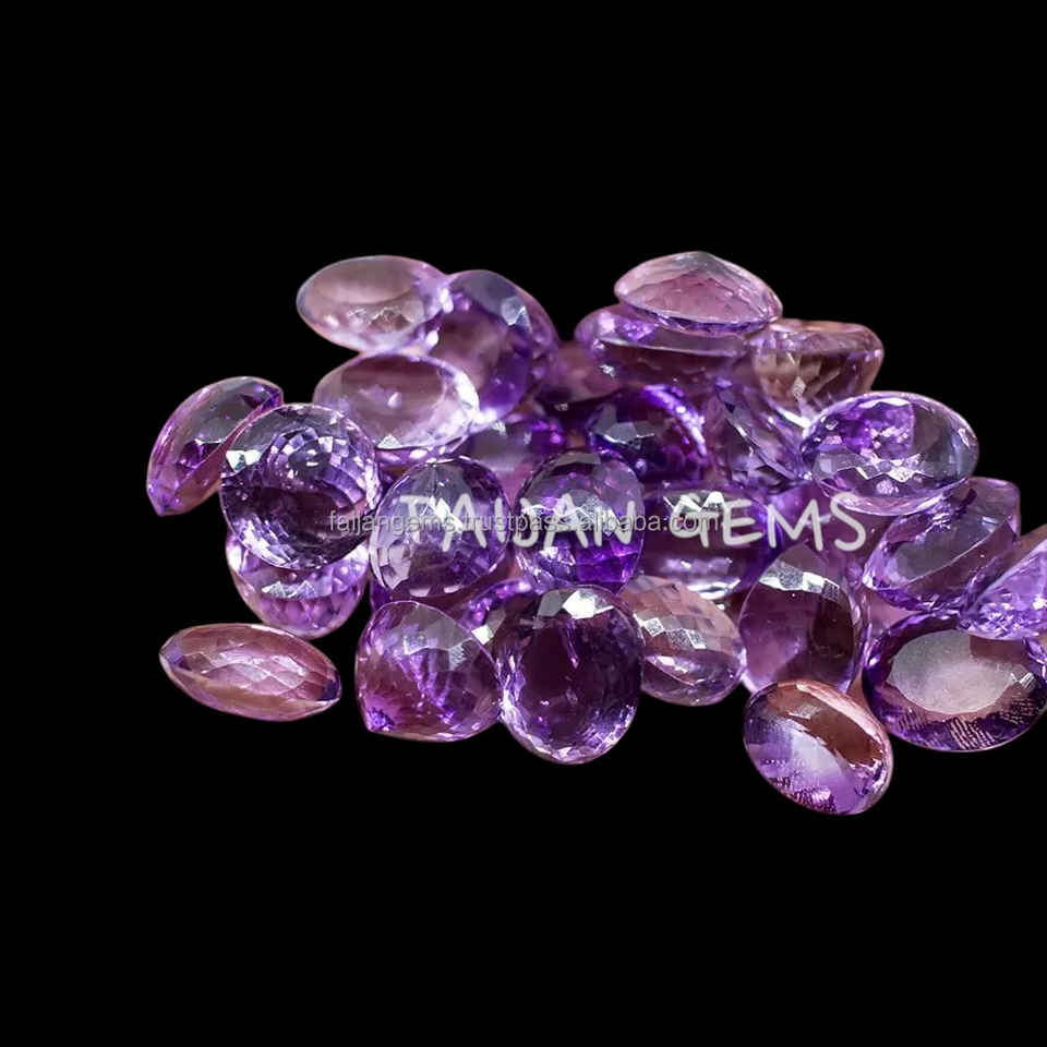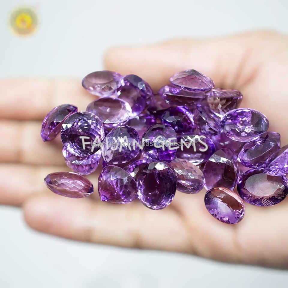 พลอยอเมทิสต์ธรรมชาติสี100% อัญมณีเจียระไนแบบเหลี่ยมเพชรพลอยทรงกลมเจียระไนแบบเจียระไน