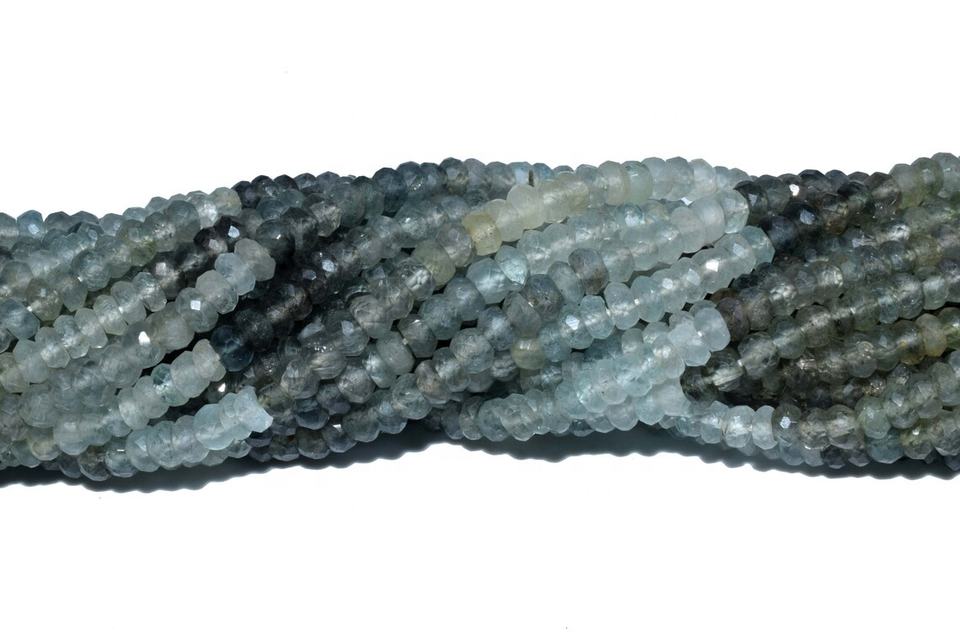 ลูกปัดทรงรอนเดลเหลี่ยมเพชรพลอยมอสส์อะความารีน