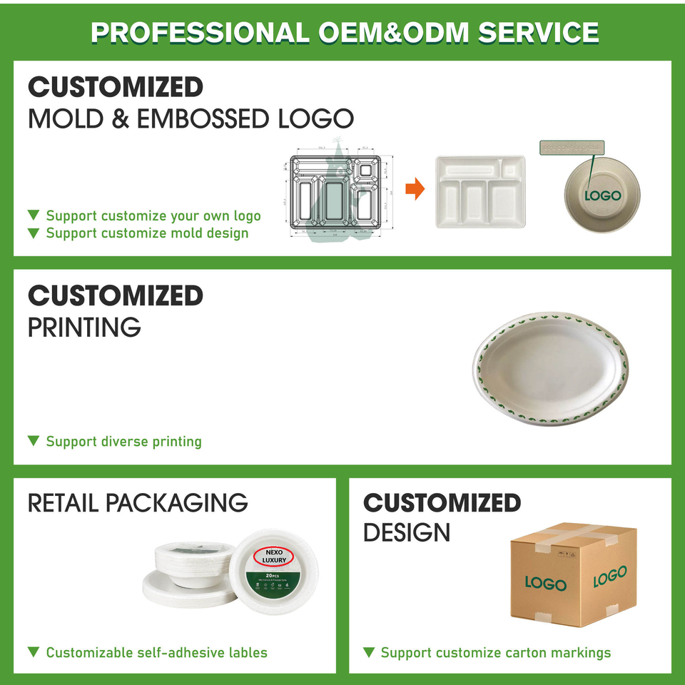 ภาชนะใส่อาหารแบบใช้แล้วทิ้งภาชนะใส่อาหารแบบย่อยสลายได้เป็นมิตรต่อสิ่งแวดล้อมถาดชานอ้อยแบบธรรมชาติ100%