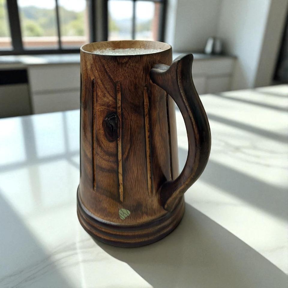 แก้วเบียร์ธรรมชาติทำจากไม้100% พร้อมหูจับไม้เหยือกเบียร์แก้วขายดีสำหรับบ้านโรงแรมและร้านอาหาร