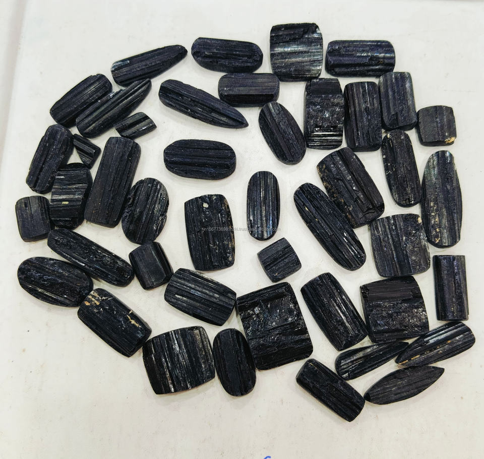 อัญมณีทรงหลังเบี้ยทัวร์มาลีนสีดำธรรมชาติ100% ผลิตจากวัสดุแฮนด์เมด