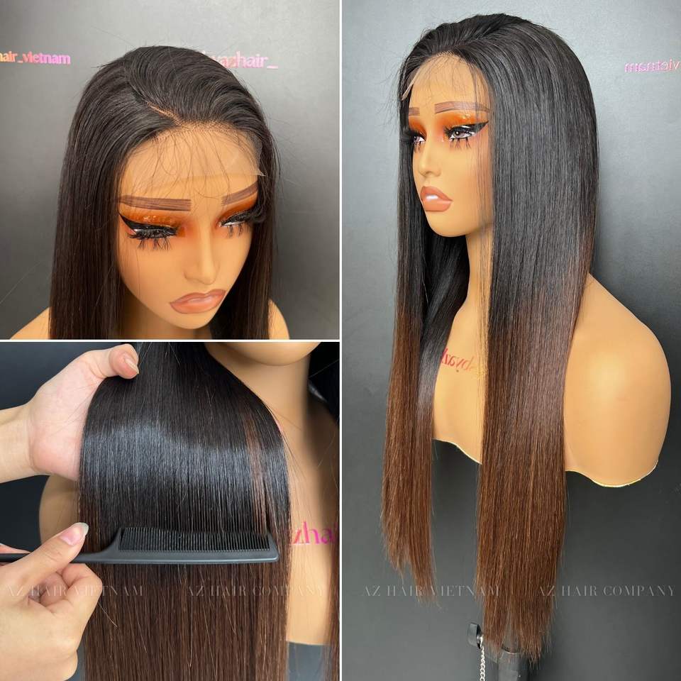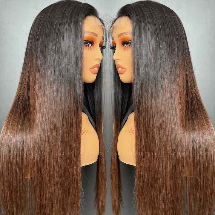 วิกผมแท้ 100% สีดำธรรมชาติแบบเวอร์จิ้นเรมี่ พร้อมต่อผมแบบตรงเรียบลื่นและปลายสีน้ำตาลสำหรับผู้หญิงผิวดำ