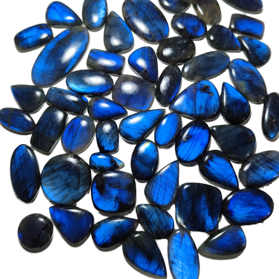 100% ธรรมชาติสีฟ้าลาบราดอร์อิตอัญมณีหลวมคุณภาพสูงสีฟ้าลาบราดอร์ Cabochon Lot คริสตัลหินจํานวนมาก Labra