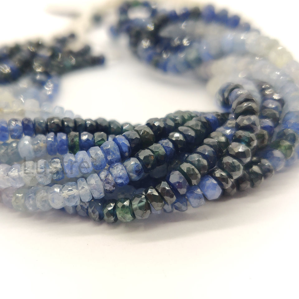 ลูกปัดพลอยไพลินสีน้ำเงินธรรมชาติ 100% ทรงรอนเดลเหลี่ยมเพชรพลอย ขนาด 4-5 มม. ยาว 16 นิ้ว ปลอดภัย ไม่เกี่ยวข้องกับการก่อการร้าย ราคาขายส่งสำหรับทำเครื่องประดับ