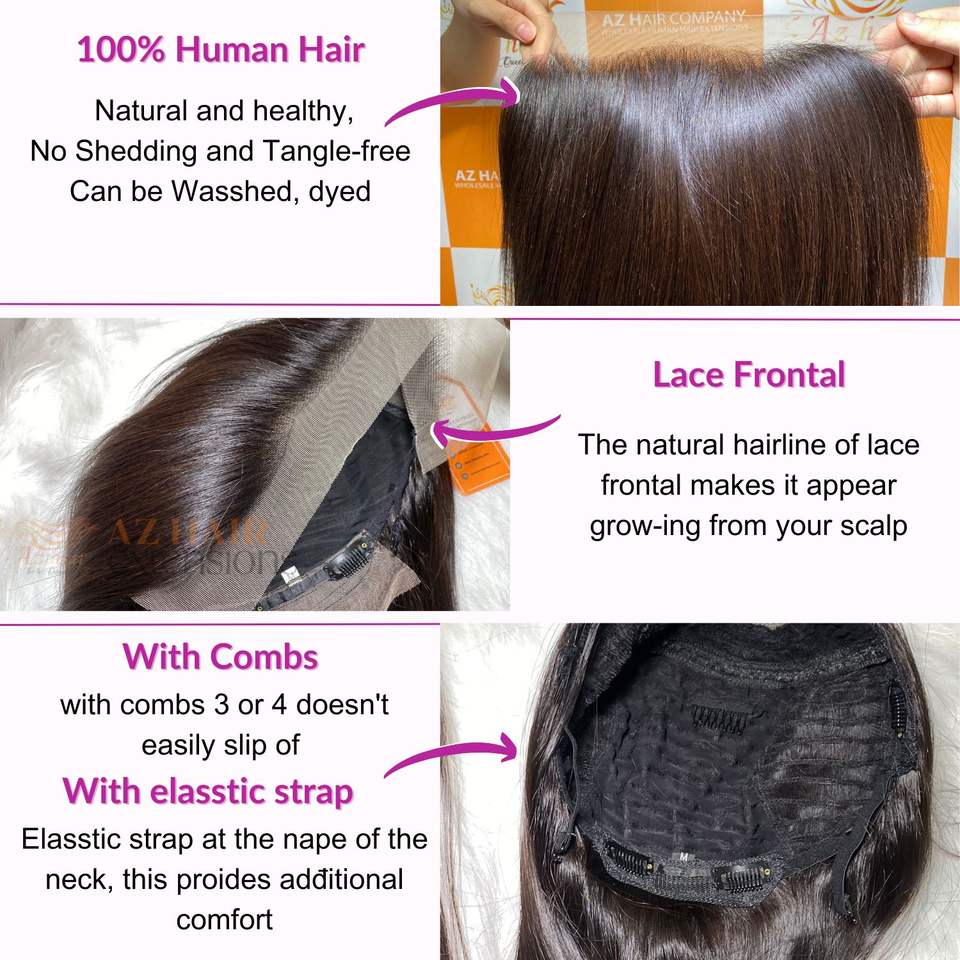 วิกผมแท้ 100% แบบตรงธรรมชาติ วิกผมแท้ 100% แบบ HD Full Lace Front สำหรับผู้หญิงผิวสี