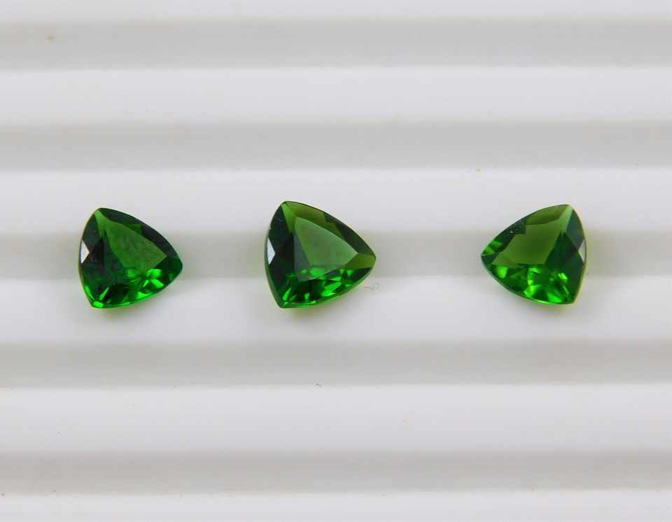 โครเมียมไดโอไซด์สีเขียวธรรมชาติ 100% รูปทรงบริลเลียนท์คัท ทรงทริลเลียน สำหรับทำเครื่องประดับ ขนาด 4*4 มม. 7*7 มม. คุณภาพสูง หินเม็ดเดี่ยว