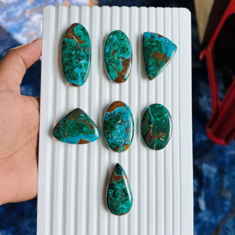100%Natural Chrysocolla Cabochon High Quality Green Loose Jewelry Various Shapes Top Quality-Natural Green Chrysocolla Gemstone