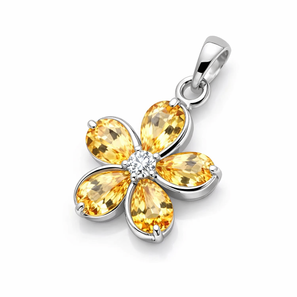 จี้ดอกซิทรินธรรมชาติ 100% หินประดับเงินแท้ชุบโรเดียม ดีไซน์เรียบง่าย โทแพซสีเหลืองธรรมชาติ