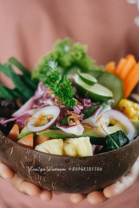 ชามกะลามะพร้าวธรรมชาติขนาดเล็ก100% แบบเวียดนามการแกะสลักเลเซอร์โลโก้เป็นมิตรกับสิ่งแวดล้อมสำหรับใช้ในบ้าน Eco2go เวียดนาม