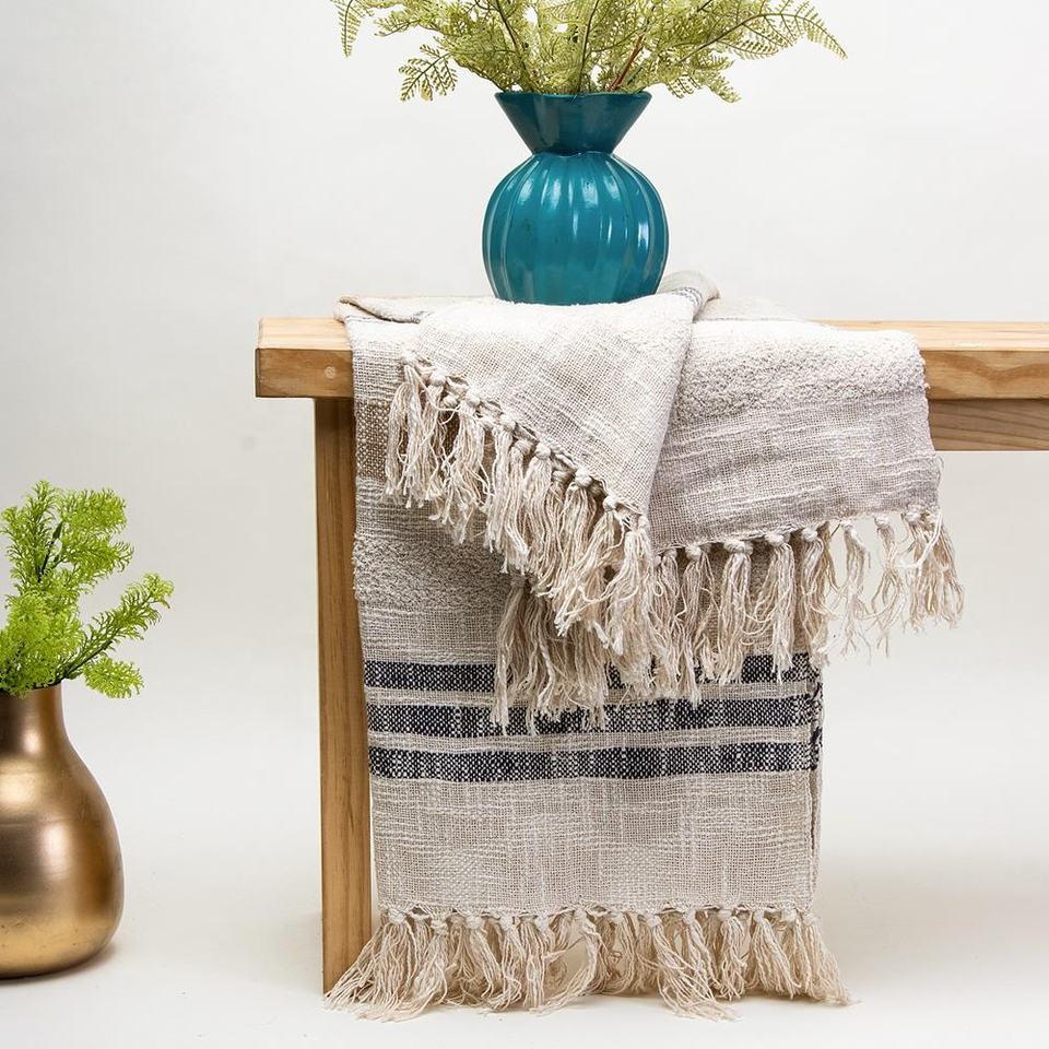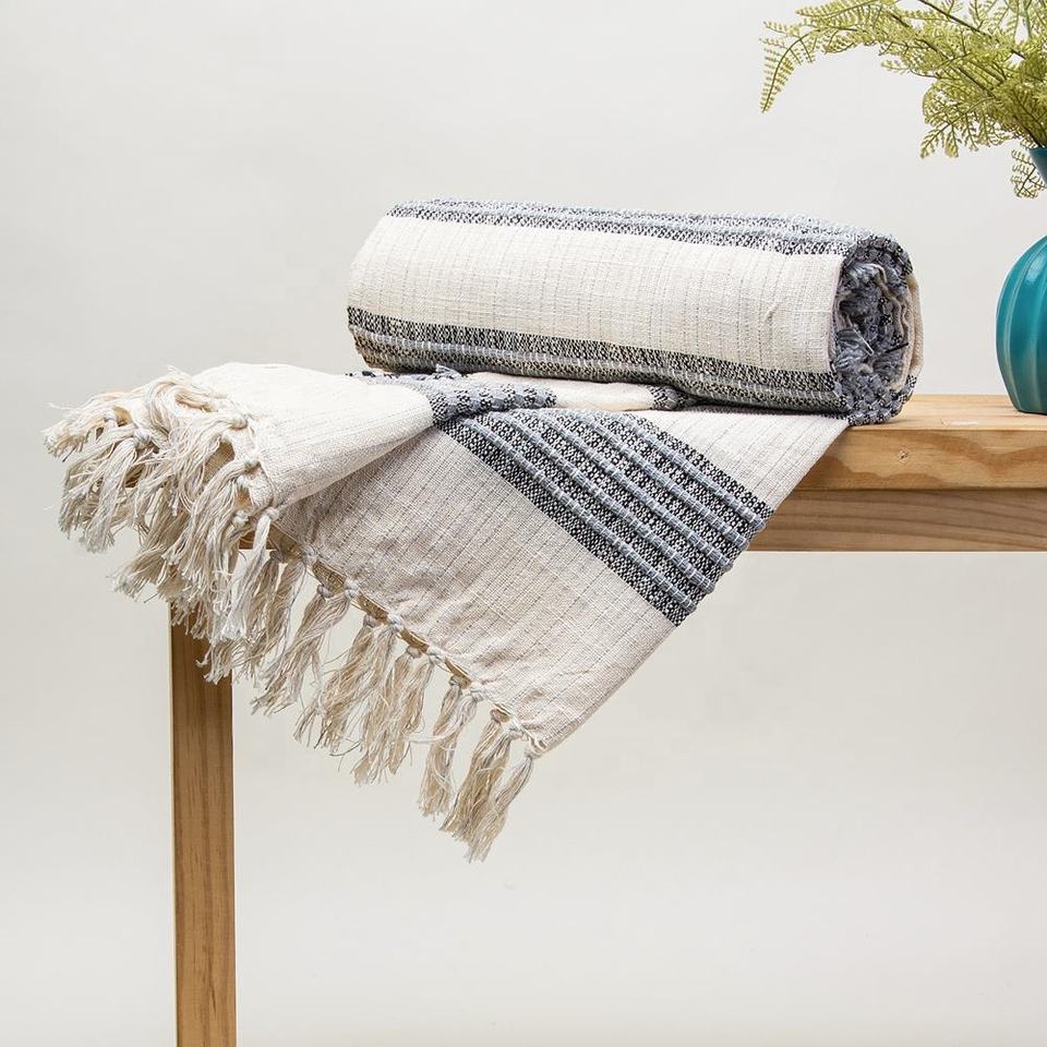 100% Natural Cotton Lightweight and Breathable Throw Blanket for Bed for All Seasons Woven Blankets