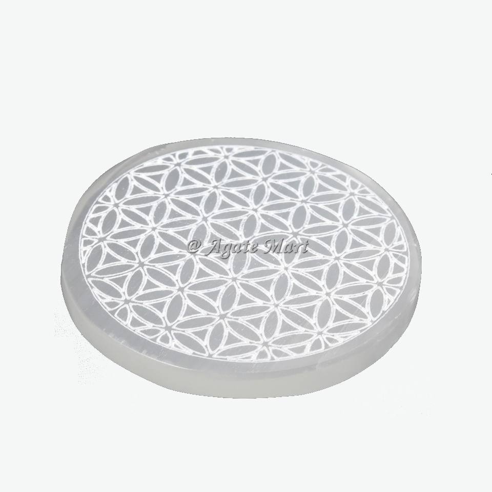 Shree Yantra Selenite ที่แกะสลักตามธรรมชาติ100% พร้อมสัญลักษณ์ดอกไม้ของขวัญที่ดีที่สุดสำหรับการรักษางานฝีมือคริสตัลขนาด3นิ้ว