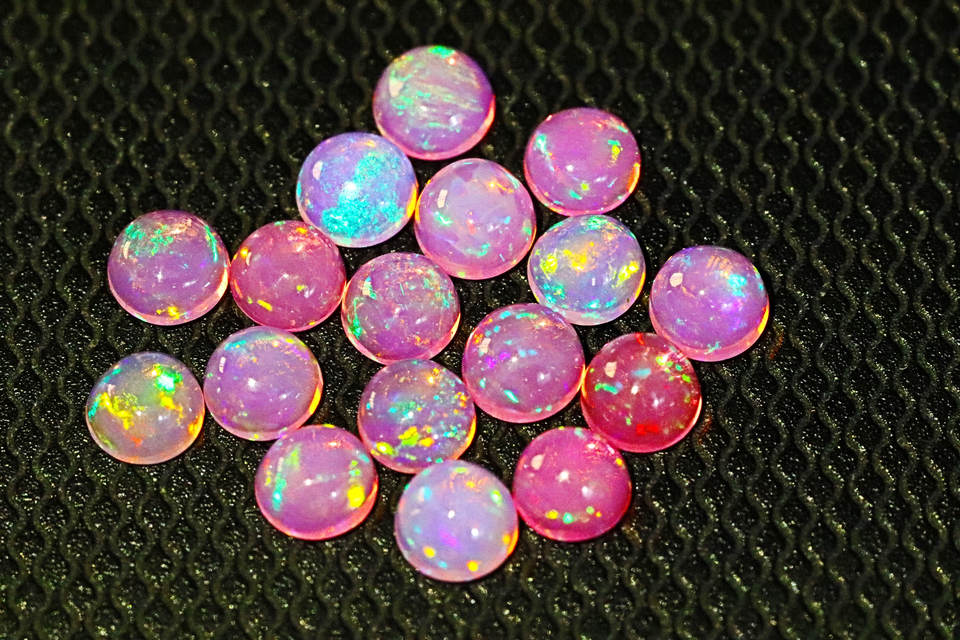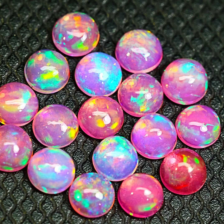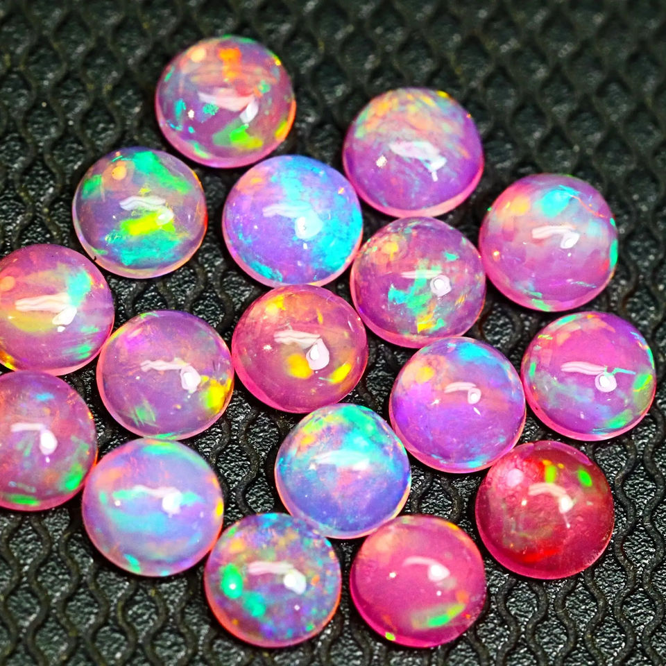 พลอยโอปอลสีชมพูเอธิโอเปียแท้ 100% แบบคาโบชอง เอฟเฟกต์ตาแมว แบบเคลือบแว็กซ์/น้ำมัน สำหรับทำเครื่องประดับ ราคาถูก ขายส่ง