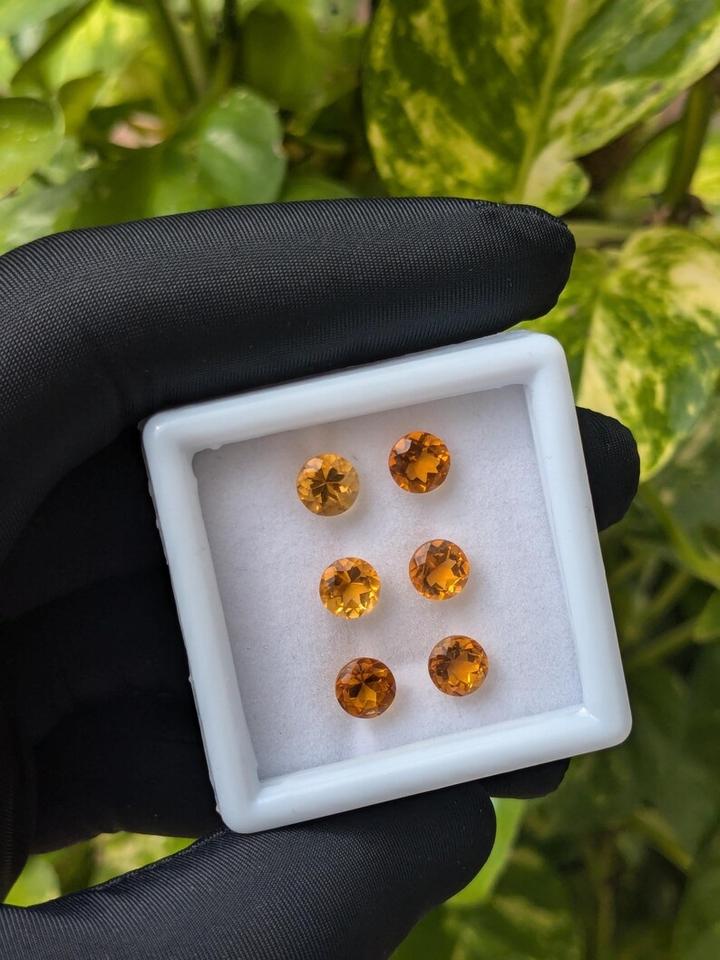 พลอยซิทรินเหลี่ยมเพชรพลอยธรรมชาติ6มม. 100% 6มม. สำหรับทำเครื่องประดับชุดอัญมณีซิทรินแบบหลวม6ชิ้น