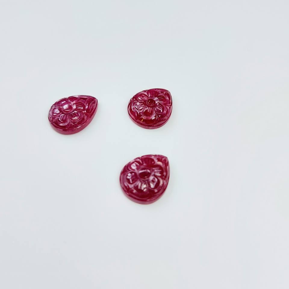 พลอยอัญมณีรูปลูกแพร์สีชมพูแดงทับทิมแกะสลักจากแอฟริกาเป็น100% อัญมณีที่ผ่านการอบด้วยความร้อนขนาดพิเศษ