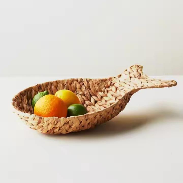 ตะกร้าเก็บผักตบชวารูปปลาธรรมชาติ100% ยืดหยุ่นเป็นมิตรกับสิ่งแวดล้อมผลิตจากเวียดนามสำหรับตกแต่งห้องครัว