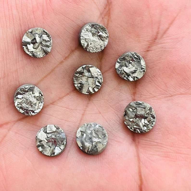 ไพไรต์สีทองธรรมชาติ 100% แบบดรูซี่ ทรงเหลี่ยมเจียระไน คุณภาพสูง สำหรับทำเครื่องประดับ อัญมณี ราคาขายส่ง