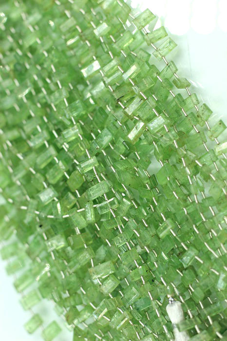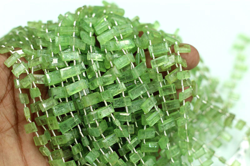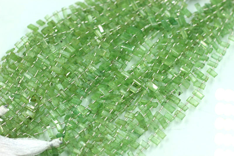 ลูกปัดพลอยไคยาไนต์สีเขียวธรรมชาติแบบ100% ตัดทรงสี่เหลี่ยมผืนผ้าหลวมลูกปัดหินปริมาณมากไคยาไนต์