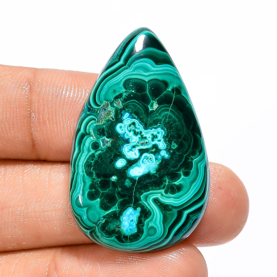 มาลาไคต์สีเขียวธรรมชาติ 100% รูปทรงหลากหลาย 62.5 กะรัต IK-249 พลอยคาโบชอง 35X22X6 มม. จี้เครื่องประดับ แหวน พลอยหลวม ชั้นที่สาม