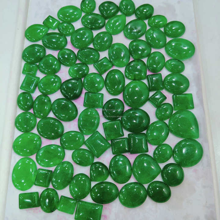 หินควอตซ์ธรรมชาติสีเขียว100% หินควอตซ์อัญมณีหลวมธรรมชาติสีเขียวทำด้วยมือ